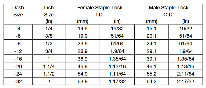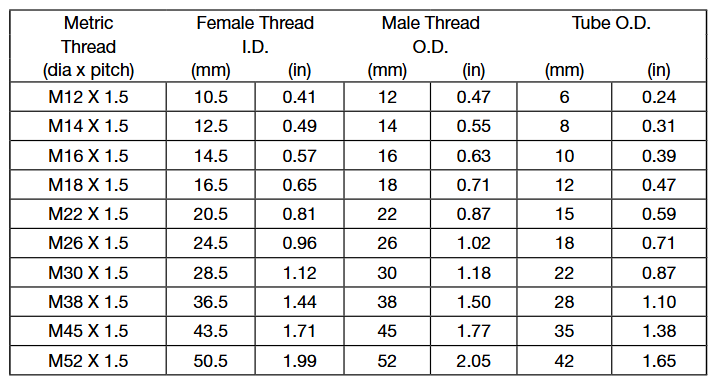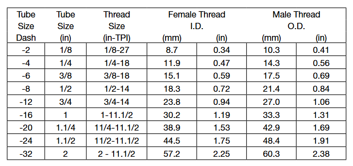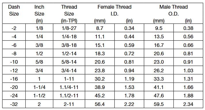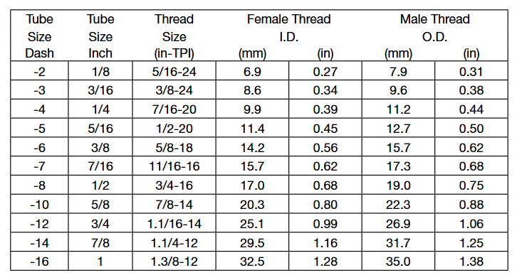 通常會(huì)把尺寸簡寫為以16為分母的分子數(shù),如-04表示4/16或1 /4” 英寸。