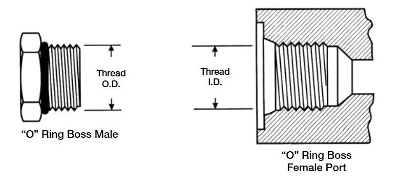 O形圈密封外螺紋僅與O型圈密封內(nèi)螺紋配合,內(nèi)螺紋通常用在油口處。