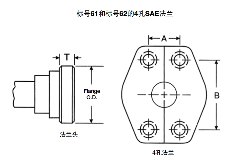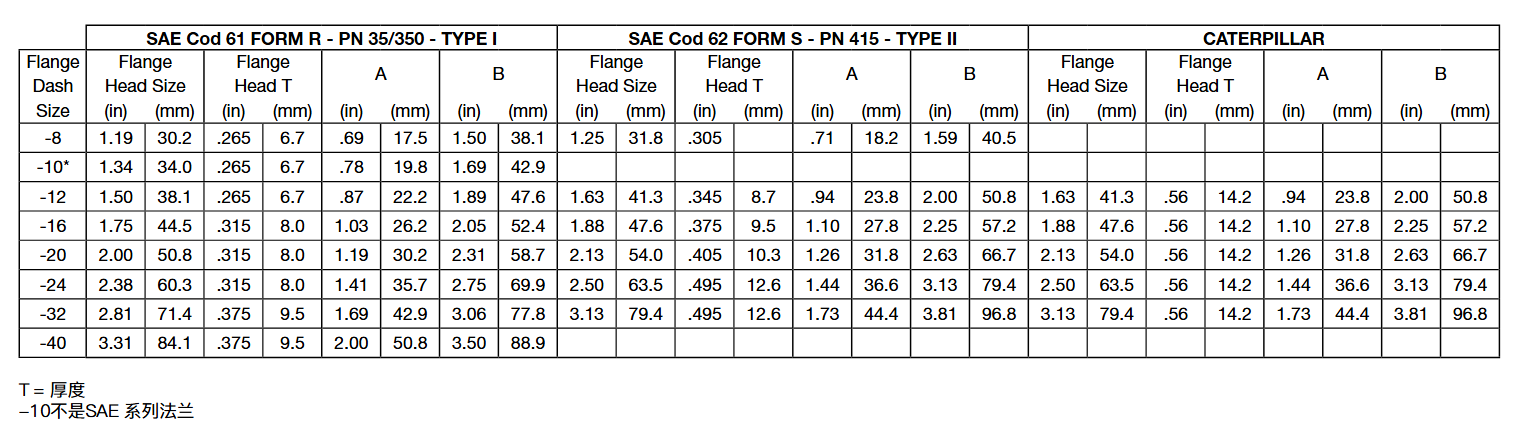 2.卡特比勒法蘭中,法蘭外徑同SAE標(biāo)號62相同,但是法蘭頭更厚,