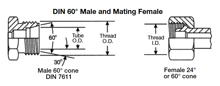 DIN接頭有輕重系列之分。通過測量螺紋尺寸和鋼管外徑可以分辨輕重系列。(重系列相比輕系列,鋼管外徑較小,但是壁較厚)。