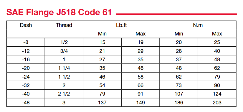 *所有標(biāo)號61的法蘭頭達(dá)到或超過SAEJ518中標(biāo)號61對于液壓對開法蘭連接的要求。標(biāo)號61法蘭頭設(shè)計(jì)可以承受最大工作壓力3000至5000 磅,視尺寸而定。