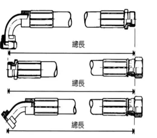 軟管總成長度:軟管總成長度是從一個(gè)軟管接頭端面到另一個(gè)軟管接頭端面的水平距離。這個(gè)長度允許±1%的制造誤差。如果長度過長,會(huì)影響外觀并增加成本;如果長度過短,軟管在受壓伸展或壓縮時(shí)沒有足夠的伸縮余地,可能會(huì)導(dǎo)致軟管被破壞。