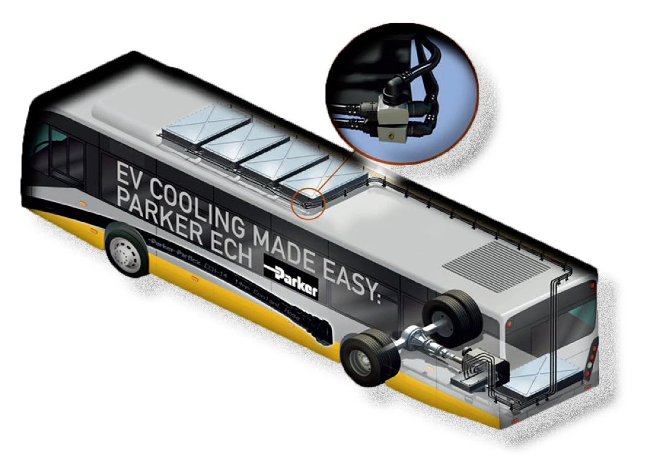 某公交車制造商在生產(chǎn)最新一代的電動公交車時,希望能夠采用創(chuàng)新的系統(tǒng)解決方案,以降低車輛原有電池冷卻系統(tǒng)的成本和復(fù)雜性。針對這一需求,派克漢尼汾為其設(shè)計打造全套冷卻系統(tǒng)解決方案——適用于水基冷卻劑的新型液冷分配技術(shù)方案,包括由輕質(zhì)熱塑性材料制成的ECH(電動冷卻用軟管)軟管以及帶EPDM O形圈密封的VDA接頭。該方案安裝簡便,更具成本效益,將幫助制造商節(jié)省至少25%的材料和人工成本。