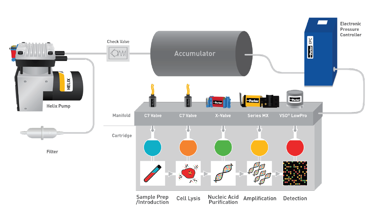 設(shè)計(jì)POCT設(shè)備時(shí),選擇合適的合作伙伴可以加速研發(fā)及產(chǎn)品上市時(shí)間。派克在過去幾十年為生命科學(xué)市場提供大量尺寸小、重量輕、集成化的系統(tǒng)解決方案,旗下產(chǎn)品廣泛,涵蓋微型泵、微型比例閥、微型電磁閥等精密流體解決方案,并能提供整套流體子系統(tǒng)或組件的預(yù)組裝與測試,以滿足POCT設(shè)備應(yīng)用需求。