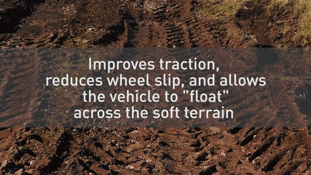 當車輛降低車速行駛時,輪胎制造商允許其降低胎壓。與通常認知不同,車輛在較低的胎壓下行駛能夠延長輪胎使用壽命,因為輪胎扎傷和胎面缺損的風險降低了。由于輪胎在松軟泥地或沙地上浮于表面而不留下較深的車轍,因此CTIS系統(tǒng)還能優(yōu)化輪胎滾阻,降低油耗。