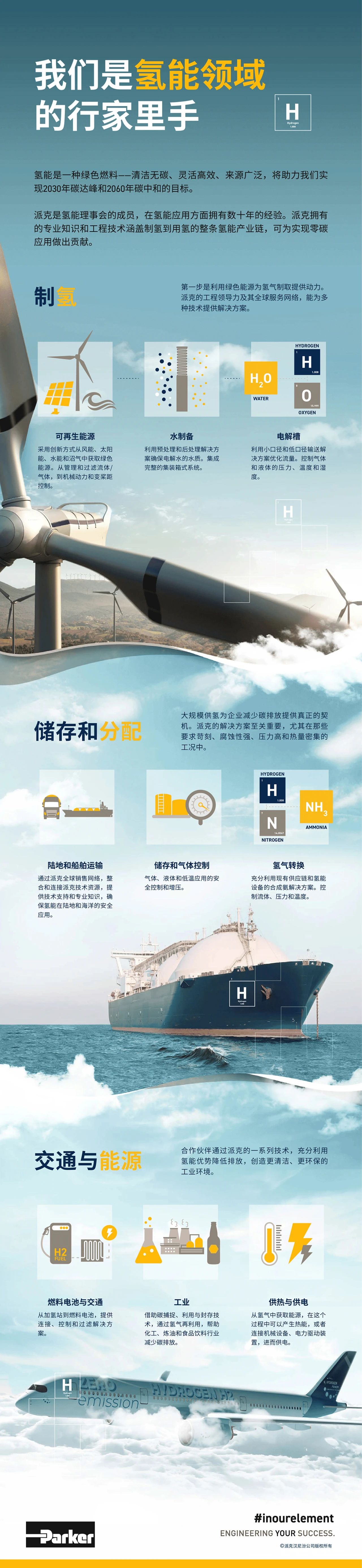 氫能是一種綠色燃料--清潔無(wú)碳、靈活高效、來(lái)源廣泛,將助力我們實(shí)現(xiàn)2030年碳達(dá)峰和2060年碳中和的目標(biāo)。派克是氫能理事會(huì)的成員,在氫能應(yīng)用方面擁有數(shù)十年的經(jīng)驗(yàn)。派克擁有的專業(yè)知識(shí)和工程技術(shù)涵蓋制氫到用氫的整條氫能產(chǎn)業(yè)鏈,可為實(shí)現(xiàn)零碳應(yīng)用做出貢獻(xiàn)。