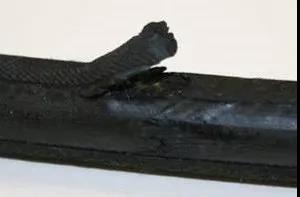 與軟管平行的切口表明軟管與運(yùn)輸材料發(fā)生直接摩擦。如果增強(qiáng)層外露或者受損,應(yīng)當(dāng)更換軟管。